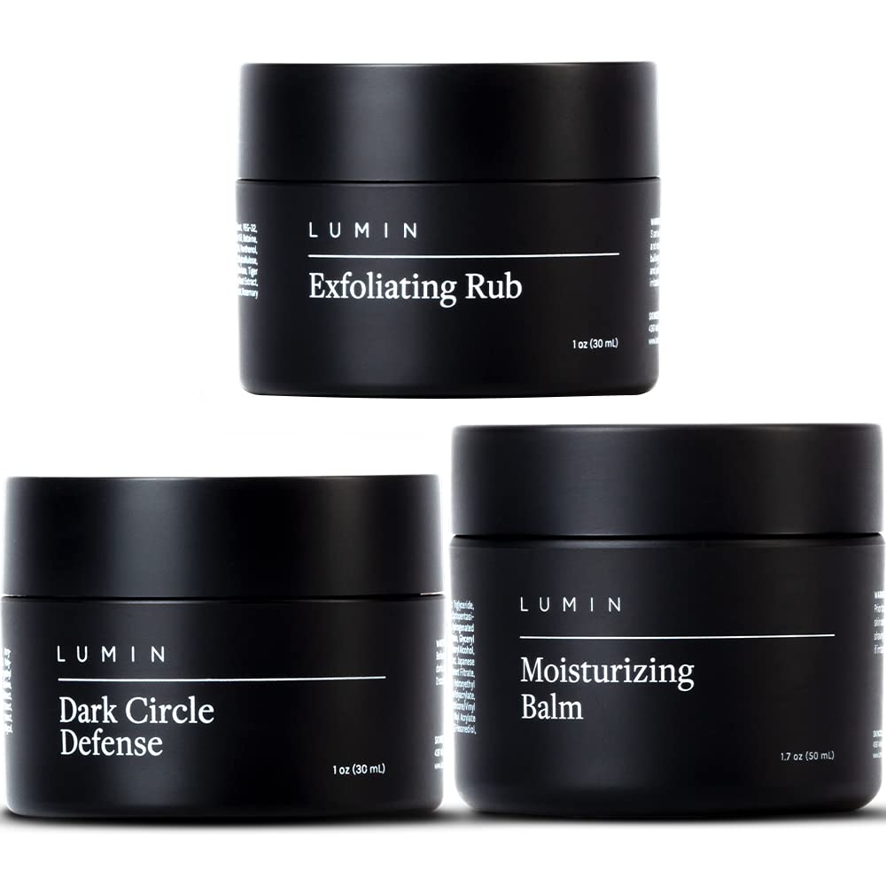 Lumin Correction Trio Collection For Men 3 Piece Kit To Help With Tired Eyes Dark Spots Uneven And Dull Skin Includes Dark Circle Defense Exfoliating Rub And Moisturizing Balm Buy Online